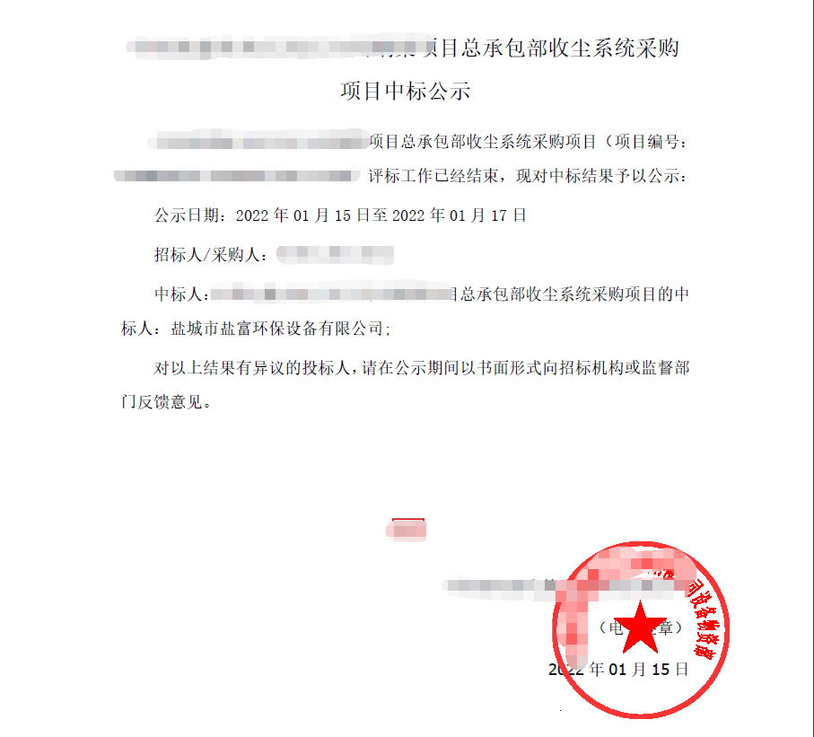 開年傳喜訊,近日從招標(biāo)單位傳來(lái)好消息,鹽富環(huán)保成功中標(biāo)又一大型砂石骨料項(xiàng)目總承包收塵系統(tǒng),實(shí)現(xiàn)開門紅。